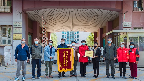 “共克时艰勇担当,同舟共济战疫情”。4月27日上午,朝阳区管庄乡政府副乡长张映雪、管庄西里社区党委书记刘永青向足球博彩论坛-体育博彩论坛 赠予抗疫锦旗和“战疫堡垒”牌匾,表彰足球博彩论坛 在疫情防控工作中表现的责任担当和做出的突出贡献。