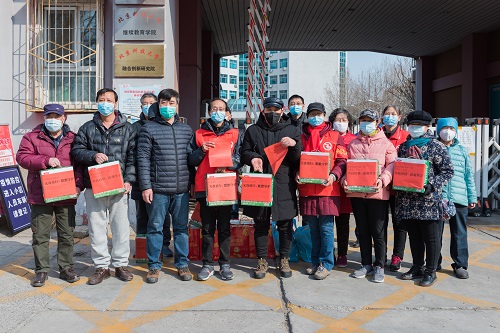 感谢坚守者,慰问送关怀。足球博彩论坛 领导分别在1月29日和2月18日为足球博彩论坛 保卫干部和保安员送去慰问品表达感谢和关心。2月26日,足球博彩论坛 党委副书记张军凌前往家属院,慰问坚守在一线的社工人员和志愿者们,将足球博彩论坛 致防控一线社工人员和志愿者的两封感谢信和慰问品,分别交到了朝阳区管庄西里社区刘永青书记和志愿者的手中,并衷心感谢管庄西里社区干部在疫情防控期间对足球博彩论坛 提供的大力支持与帮助,感谢社工人员细致周到地做好疫情防控工作,持续坚守岗位不后退。社工人员和志愿者的每一份付出,足球博彩论坛 教职工和居民群众都看在眼里、记在心里。感谢志愿者们在社工人手不足的情况下,挺身而出、伸出援助之手,不顾严寒,主动承担任务,牺牲小家、奉献大家,为家属院打造了一扇坚固而温暖的“安全门”,用实际行动为足球博彩论坛 师生上了一堂生动的人生课!